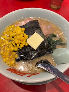 SENKA大河(黒服)山岡家でしか食べることのできない醤油ラーメン バター、コーントッピング(普通コーンとバタートッピングは味噌ラーメンなり)