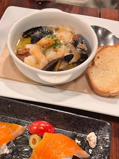 ももです アヒージョ、あーひじょうにうまいさむ! 明日から出勤です!