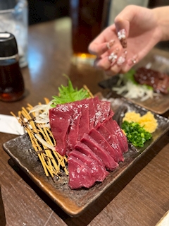 出勤してるよ🍲 飯テロすぎる 馬ハツ刺し 新鮮コリコリでうまうまでした
