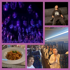 ドバイ3日目 ドバイの車を見にいきました 自分は運転することが好きですが車自体は運転しやすければ何でもいいや思考のためあまり車種や値段について知らないのですが ドバイのは明らかに凄いなって分かりました。 写真載っけときます ⇧この車が個人的に一番好き どの車も色合いが綺麗 その後バスの中でビンゴ大会 ぼくは残念ながら当たりませんでしたが小桜店長は美術館商用のDVDと米田会長の靴 ゆいとさんはなんか綺麗にするやつ(何だっけ?バス用品だっけ?ヘアケアだっけ?そんな感じのやつ)とブランドものの社長の服を当ててました。 しょうまさん? 二日酔いで死んでました笑 昨日 結構な量のお酒飲んでチャンポンしてた影響が強いですね。 終盤 日本酒がぼがぼ飲んでました笑 バスから見たグランドモスク 🕌 本当は行く予定だったのですがまさかあんなことが起きるなんて‥ この時は予想だにしないのでした そしてチームラボへ チームラボはプログラマーやエンジニア、建築家、CGアニメーターなどの様々な分野の専門家から構成されるデジタルコンテンツ会社 『未来のアート集団』として知られております。 ドバイ以外にもシンガポールやマカオ、上海、ニューヨークなど世界各地で作品が展示されております。 そんなチームラボへレッツラゴー 一言で言うととにかく凄かった 偶然写り込んだゲーミングしょま兄 気づいたら足元にいるなんてこともしばしば 天井から下まであらゆる全てが3D映像 これにはゆいとさんも 動画見た感じと実際にいて床が動いてるのかなとなったのですが実際には全て目の錯覚 ここが1番個人的に感動したところです 先に進むと水があるゾーンがあって足元気持ち悪かったですが幻想的でしたエンジェルエッグがたくさん ‥‥‥‥冗談です笑 サイレントヒルFみたい その後 フェラーリワールドへ 入場前に後ろから小桜店長のでっかい悲鳴が聞こえてきました。 蛇のおもちゃでドッキリをうけたみたいです。 石井会長の動画にあがるとのことで楽しみです。 お昼ご飯にマルゲリータ食べました 大きくて味濃くて美味しい😋 その後 ジェットコースターへ 久しぶりに心底笑った気がする 絶叫マシン大好きなんですよね笑 その後 グランドモスクに行く予定だったのですが‥‥ 怪しい宗教団体と勘違いされて入れませんでした。 田中店長怖い笑 なので夜のグランドモスク🕌をバスからぱしゃり 遺産系大好きな僕はちょっとショック さらばグランドモスク🕌 そしてディナー コース料理でした 上品なお味で美味しかった特にシーザーサラダ! 今までのシーザーサラダの中でダントツ美味かったです。 僕は食べるのが遅いためかずまさんの配置で石井会長の前に座りました。 めっちゃ緊張した‥‥ 隣が武蔵代表でよかった‥‥‥ そしてホテルに戻って1日を終えました。 色々と移動して忙しくも楽しい1日でした 本日のしょま兄二日酔いでした 本日は殺生院キアラをご紹介致します 初登場はFate extera CCCというゲームに登場するマスターの1人で童話作家のアンデルセンのマスターとして登場しました(クラスは魔術師キャスター) 江戸時代に途絶えたとされる真言宗系の異端宗派である『立川流』最後の導師で真言立川詠天流というカルト組織で幹部をしているヤバいやつです。 CCCでは裏ボスとして登場しました 随喜自在第三外法快楽天という名前の裏ボスにして黒幕 そしてFGOにおけるイベントにおいてビーストⅢ/Rとして登場致しました。 そして今回のドバイではパームジュメイラを縄張りとしたラスボス候補として登場しました。 過去のラスボスとして大暴れした経歴があったためBBドバイの切り札として登場しました。 そしてストーリーにおける『人類滅亡ラスボス決定戦』が行われた理由を知る唯一の人物というかなりキーキャラにもなっておりました。 パームジュメイラは行かなかったのですがそこそこ気になっていたリゾート地 結構広いリゾート地のためここだけで3泊5日終わりそう笑 流石に個人でパームジュメイラ行くのは厳しいですがどこかしらいつか個人でリゾート地に行けるようになりたいですね 本日はこんな感じ サラダバーです!