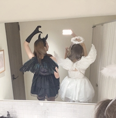 SENKA RIKU りくだよー!ハロウィンイベント2日目!最終日! 昨日はきらりとお揃い 天使と悪魔 👼😈 きらり悪魔似合ってて可愛かった!!(⃔ `꒳´ )⃕↝♡ その後久々に一蘭たべた(っ⸝⸝>⤚<⸝⸝)モグモグ 美味しかった🤤 今日もがんばるぞー!!! りくでした🐯💜